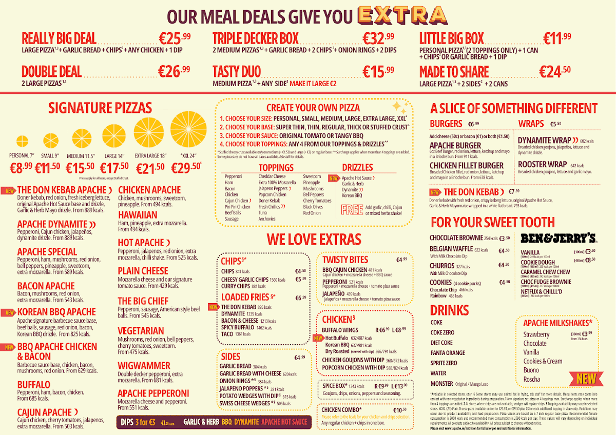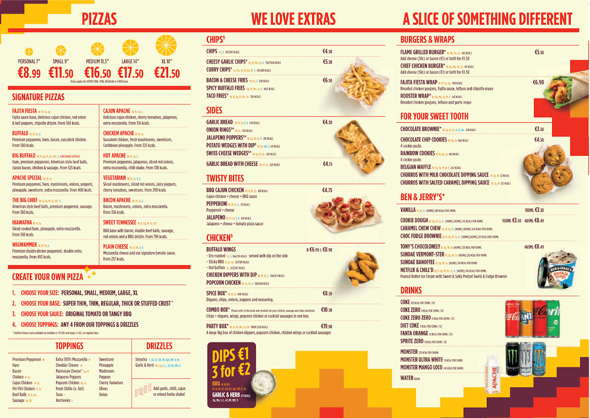 Welcome to Apache Pizza Ballinrobe, your go-to destination for mouthwatering pizza in Co. Mayo, Ireland. Located on New St, this vibrant establishment promises delicious dining options that cater to every taste. The menu boasts an enticing variety of pizzas, with unique toppings and styles that delight both locals and visitors alike.